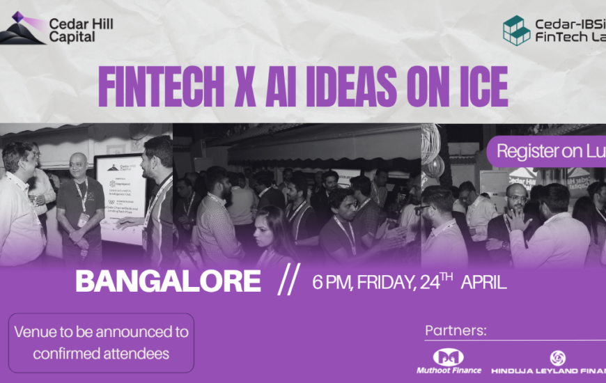 Hosted by Cedar Hill Capital & the Cedar-IBSi FinTech Labs We are glad to bring the next edition of Ideas on ice back to Bangalore – an invite-only evening focused on meaningful conversations between Financial Services leaders, TechFins, investors and...